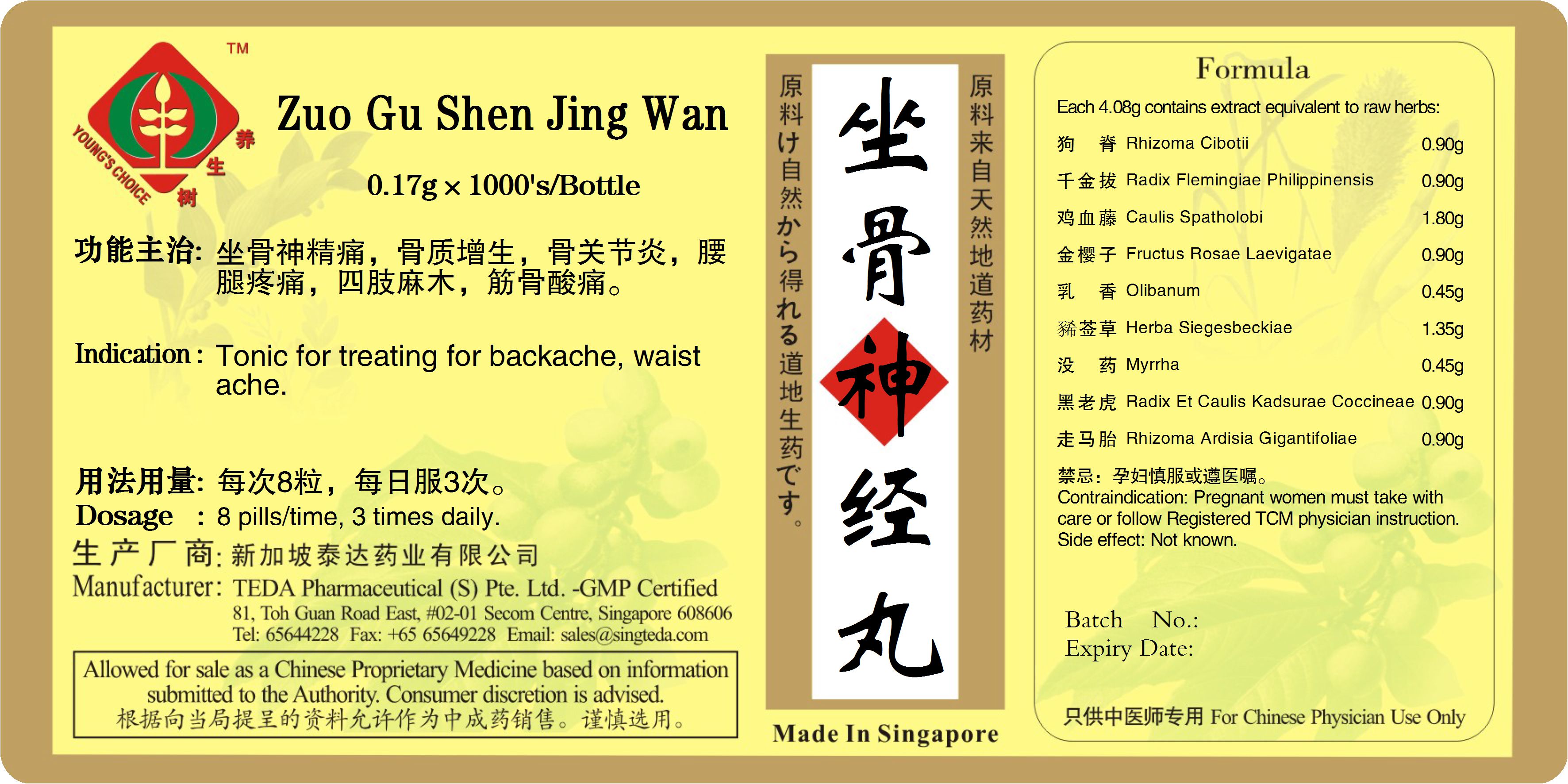 坐骨神经丸 Zuo Gu Shen Jing Wan(1000's) (WZG02A) Category: Pills UOM: BOT 【功能主治】坐骨神经痛,骨质增生,骨关节炎,腰腿疼痛,四肢麻木,筋骨酸痛。 Indication: Tonic for treating backache and waist ache. Ingredients: 狗脊 Rhizoma Cibotii 千斤拔 Radix Flemingiae Philippinensis 鸡血藤 Caulis Spatholobi 金樱子 Fructus Rosae Laevigatae 乳香 Olibanum 豨莶草 Herba Siegesbeckiae 没药 Myrrha 黑老虎 Radix Et Caulis Kadsurae Coccineae 走马胎 Rhizoma Ardisae Gigantifoliae SGD 32.50 |