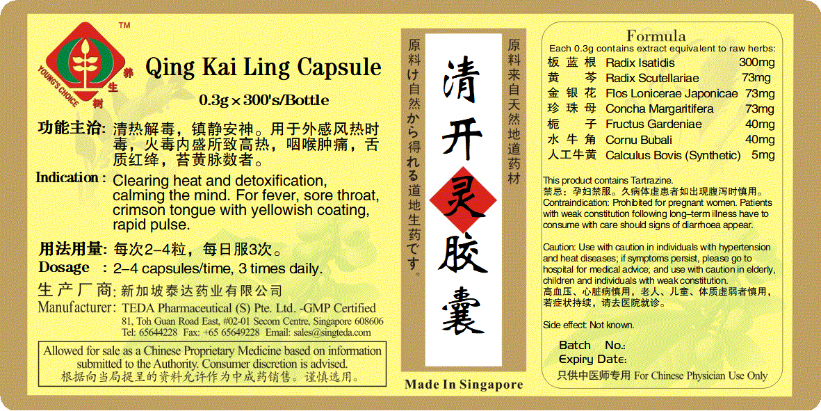 清开灵胶囊 Qing Kai Ling Capsule(300‘s) (JQK01) Category: Capsule UOM: BOT 【功能主治】 清热解毒,镇静安神。用于外感风热时毒,火毒内盛所致高热,咽喉肿痛,舌质红绛,苔黄脉数者。 Indication: Clearing heat and detoxification, calming the mind. For fever, sore throat, crimson tongue with yellowish coating, rapid pulse. Ingredients: 板蓝根 Radix Isatidis 黄芩 Radix Scutellariae 金银花 Flos Lonicerae Japonicae 珍珠母 Concha Margaritifera 栀子 Fructus Gardeniae 水牛角 Cornu Bubali 人工牛黄 Calculus Bovis (Synthetic) SGD 33.75 |