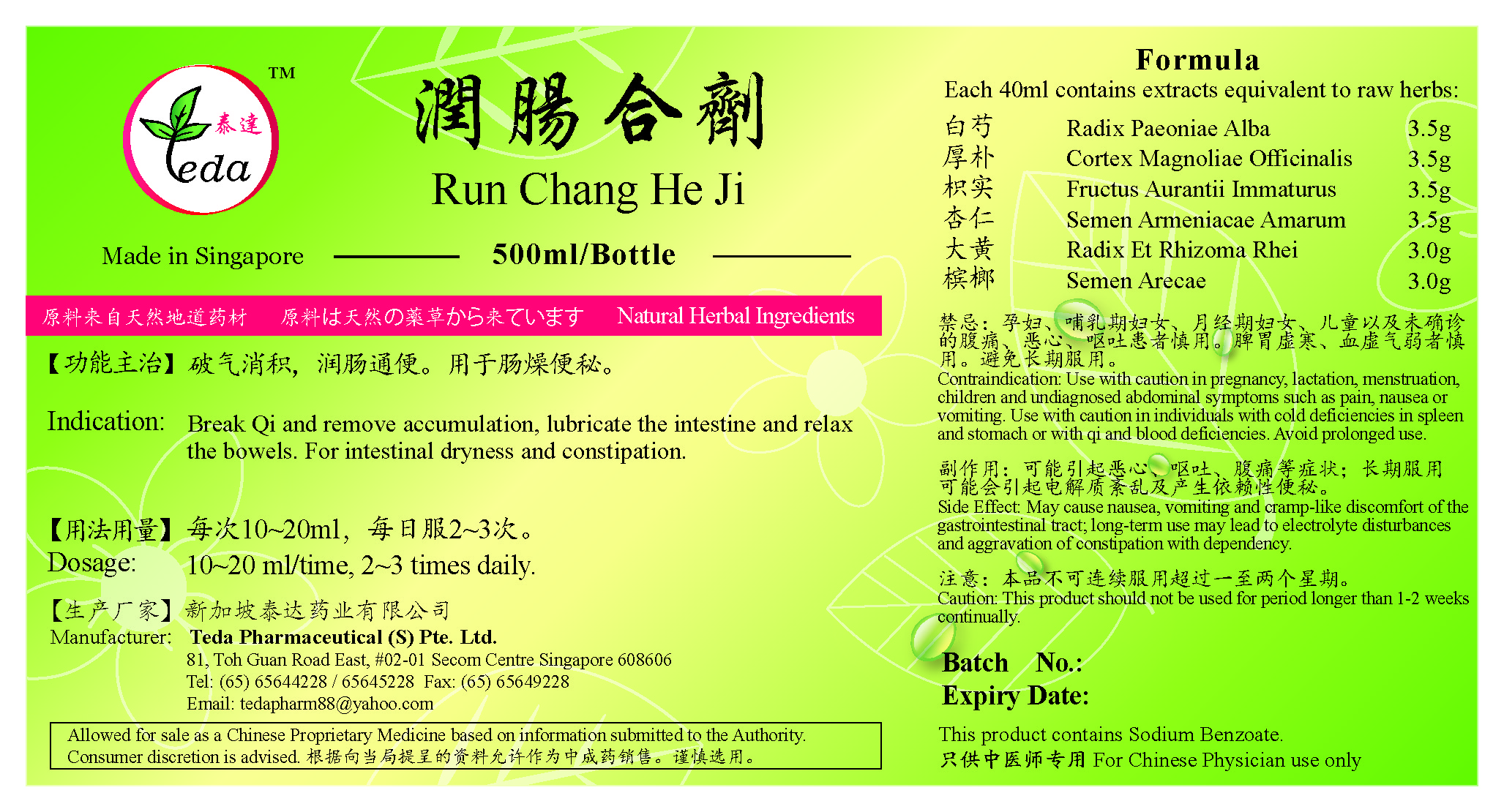 润肠合剂 Run Chang He Ji(500ml) (TRC01) Category: Liquid Preparations UOM: BOT 500ml 【功能主治】破气消积, 润肠通便。用于肠燥便秘。 Indication: Break Qi and remove accumulation, lubricate the intestine and relax the bowels. For intestinal dryness and constipation. Ingredients: 白芍 Radix Paeoniae Alba 厚朴 Cortex Magnoliae Officinalis 槟榔 Semen Arecae 枳实 Fructus Aurantii Immaturus 杏仁 Semen Armeniacae Amarum 大黄 Radix Et Rhizoma Rhei SGD 12.30 |