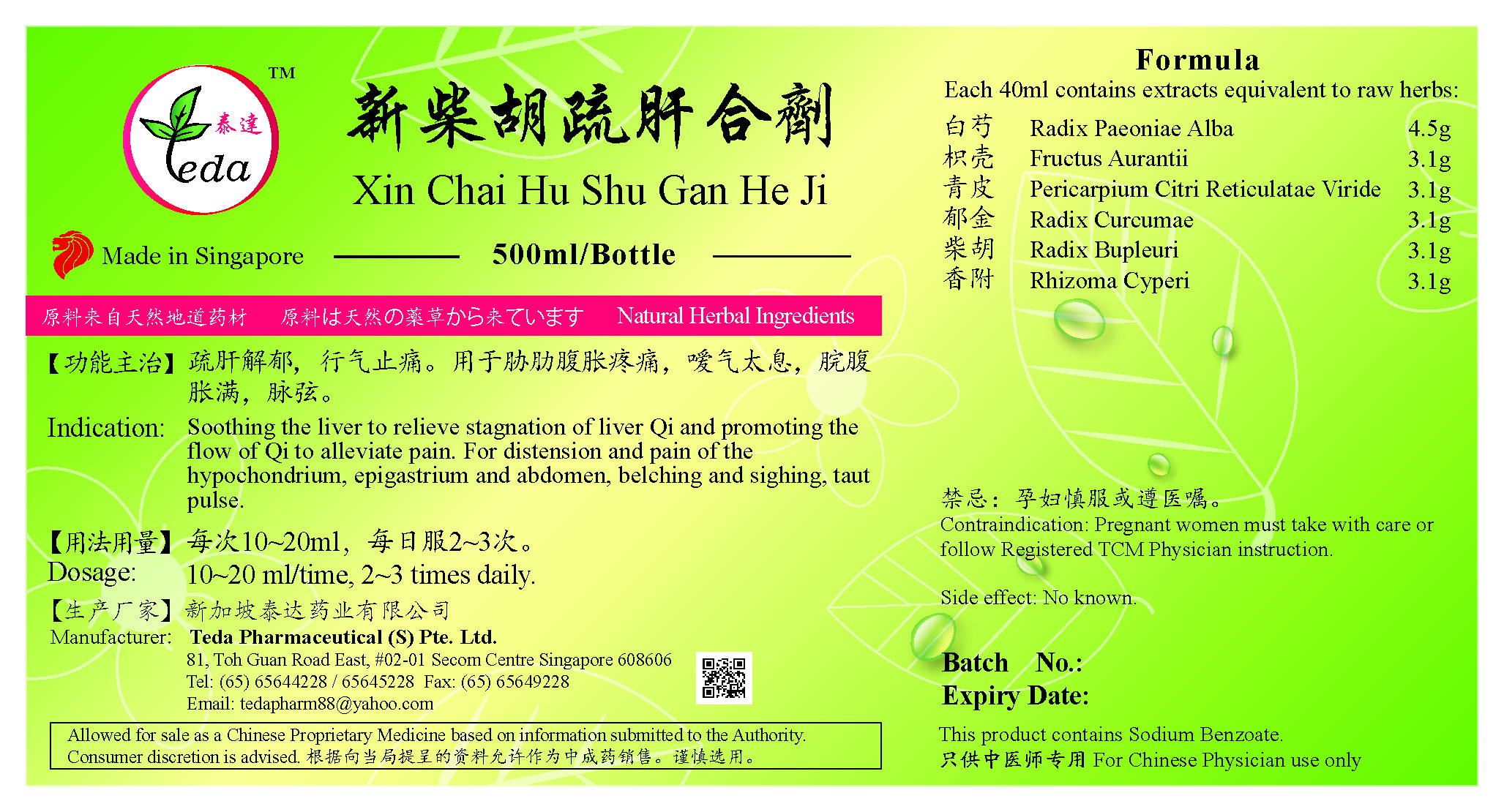 新柴胡疏肝合剂 Xin Chai Hu Shu Gan He Ji(500ml) (TXC02) Category: Liquid Preparations UOM: BOT 500ml 【功能主治】疏肝解郁, 行气止痛。用于胁肋腹胀疼痛,嗳气太息,脘腹胀满,脉弦。 Indication: Soothing the liver to relieve stagnation of liver Qi and promoting the flow of Qi to alleviate pain. For distension and pain of the hypochondrium, epigastrium and abdomen, belching and sighing, taut pulse. Ingredients: 白芍 Radix Paeoniae Alba 柴胡 Radix Bupleuri 枳壳 Fructus Aurantii 香附 Rhizoma Cyperi 郁金 Radix Curcumae 青皮 Pericarpium Citri Reticulatae Viride SGD 12.70 |