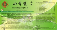 小青龙合剂 Xiao Qing Long He Ji (500ml) (TXQ01) Category: Liquid Preparations UOM: 【功能主治】解表散寒,温肺化饮。外寒内饮证。恶寒发热,无汗,胸痞喘咳,痰多而稀,或痰饮喘咳,不得平卧,或身体疼重,头面四肢浮肿。 Indication: Relieving the pathogenic factors from the exterior and expelling cold and interior fluid-retention, marked by aversion to cold, fever without perspiration, headache,cough and asthma with profuse thin sputum, inability to keep horizontal posture if serious or swollen extremities. Ingredients: 麻黄 Herba Ephedrae 白芍 Radix Paeoniae Alba 桂枝 Ramulus Cinnamomi 姜半夏 Rhizoma Pinelliae 细辛根 Radix Et Rhizoma Asari 干姜 Rhizoma Zingiberis 甘草 Radix Glycyrrhizae 五味子 Fructus Schisandrae Chinensis SGD 17.50 |