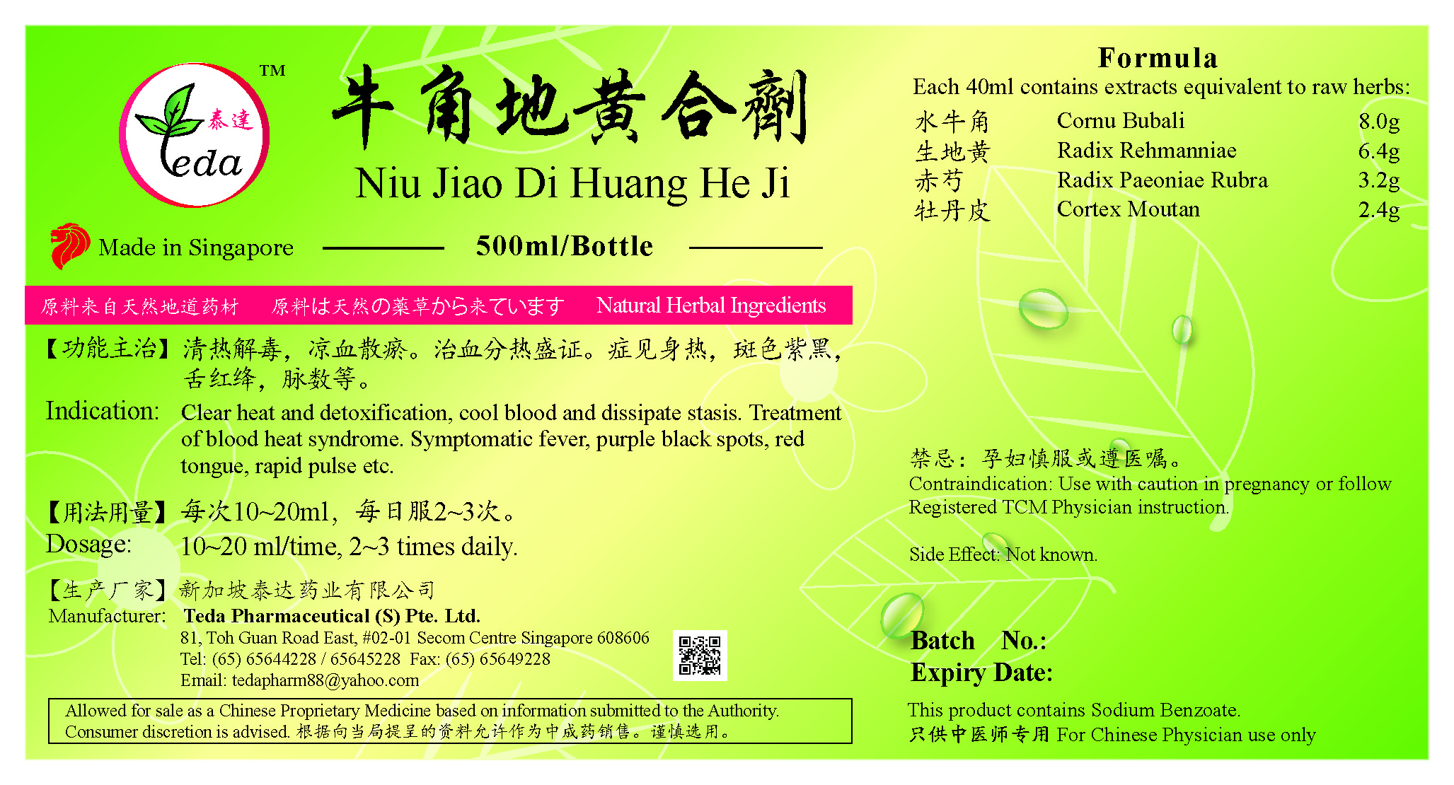 牛角地黄合剂 Niu Jiao Di Huang He Ji(500ml) (TNJ01) Category: Liquid Preparations UOM: BOT 500ml 【功能主治】清热解毒,凉血散瘀。治血分热盛证。症见身热,斑色紫黑,舌红绛,脉数等。 Indication: Clear heat and detoxification, cool blood and dissipate stasis. Treatment of blood heat syndrome. Symptomatic fever, purple black spots, red tongue, rapid pulse etc. Ingredients: 水牛角 Cornu Bubali 生地黄 Radix Rehmanniae 赤芍 Radix Paeoniae Rubra 牡丹皮 Cortex Moutan SGD 13.50 |
